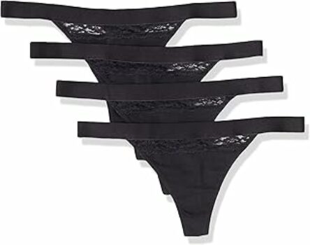 Amazon Essentials Intimo Perizoma in Cotone e Pizzo Donna, Pacco da 4 – B09GBMPVWG
