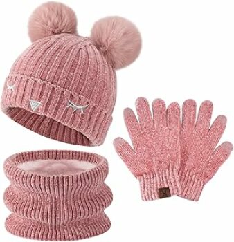 Bequemer Laden Bambino Bambina Invernale Termico Cappello Berretto Beanie con Pompom Sciarpa Scaldacollo in Maglia Guanti Touch Screen Set per 3-10 Anni Bambini – B09CTHBQLF