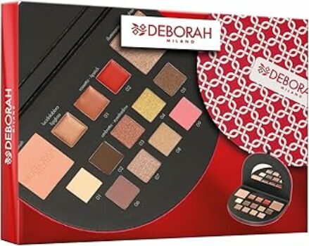 Deborah Milano – Trousse Set Regalo Donna Make Up Beauty Gift n.1 Mini Toni Caldi, Include Palette di Ombretti, Gloss, Rossetti e Polveri Viso dai diversi Finish e Colori, in Carta FSC – B0DHL7F594