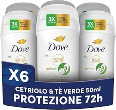Dove Deodorante Stick Go Fresh Cetriolo e Tè Verde, Deodorante Antitraspirante, Protezione Fino a 72 Ore, con Pro-Ceramide Technology e Ingredienti Idratanti, Deodorante Uomo e Donna, 6 Pezzi da 50ml – B0DTV5MQMK