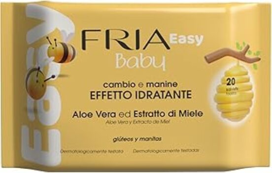 Fria Easy Baby Salviette per Cambio Pannolino, con Aloe Vera ed Estratto di Miele ad Effetto Idratante sulla Pelle, Dermatologicamente Testate, Confezione da 20 Salviette – B00XQCJJC4