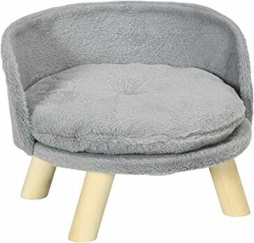 PawHut Lettino per Cani Taglia Media di 5 kg Massimo Rotondo, Divano per Cani in Tessuto di Peluche e Legno con Cuscino Extra Lavabile in Cotone PP, Ø40.5×33 cm, Grigio – B0DYJKCBV2