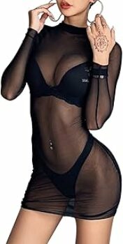 ROSAA Intimo Donna Sexy Lingerie Rete,Mini Abito Attillato in Pizzo,Babydoll Trasparente Maniche Lunghe,Abiti Corti Discoteca,Camicetta Pullover Aderente Estivo,Collant Sottoveste(Nero) – B09TRBC3VR