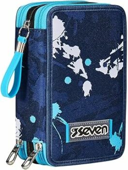 Seven Astuccio 3 Scomparti, Blu, Triplo Scomparto, Completo di Matite, Pennarelli, Colori, Accessori Zaino, Elementari, Medie, Superiori, Bambino e Ragazzo – B0D31NJN1X