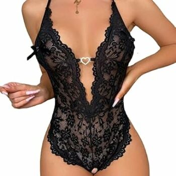 Tomedeks Lingerie Sexy Intima in Pizzo Body Hot Babydoll Abbigliamento da Notte Pigiama Camicia da Notte Trasparente Négligé Sleepwear Completino per Donna Nero(A) – B0GHXMWW1M