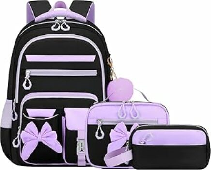 Amythe Zaino Scuola Elementare Bambina 3 Pezzi, Set Zaini Bambina Set 6-11 anni con Sacchetto per Pranzo e Astuccio per Matite, Zainetto Ragazza per Scuola, Viola – B0F9DX4P7S